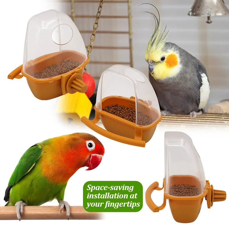 Made from wear-resistant plastic, this feeder includes a transparent top cover so you can monitor food and water levels without removing the lid. It mounts securely to most standard bird cages using a threaded slot and nut for a firm hold. Whether you choose the 1-piece or 2-piece pack, it’s ideal for daily feeding or gifting to bird-loving friends.